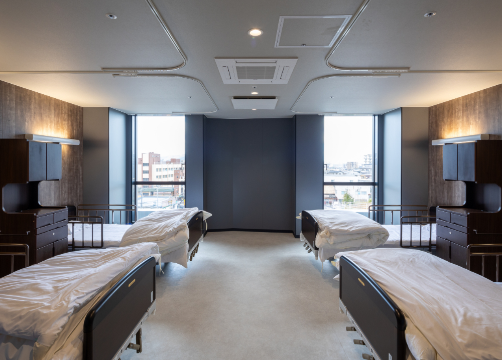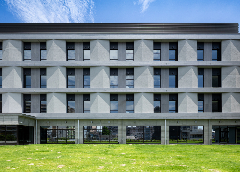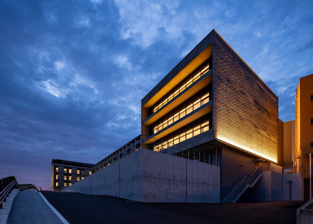 日明病院は、1930 年に旧小倉市郊外日明の丘に小倉脳病院として設立され、約90 年間に渡り精神科病院として地域に根ざしてきた歴史ある病院である。設立当初は、周囲は原野で、海岸線は真下であり、現在では考えられない様な風景であったという。今では夜遅くまで人の気が絶えず、日中は繁華街と見間違えるような雰囲気である。新病院では、この街なかの都市的環境を最大限に活かし、社会復帰活動を充実させた都市型の精神医療に取り組み、「生き方の練習」を地域の人々と協力しながら育んでいくことを目指している。本計画では建物だけでなく、これら擁壁も新設、改修する必要があり、病院運営を継続させながらの、安全かつ効率的な建替が求められた。